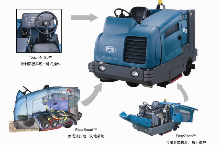·室外:坦能掃洗一體機(jī)工作效率高,一次通過(guò)可立即干燥地面